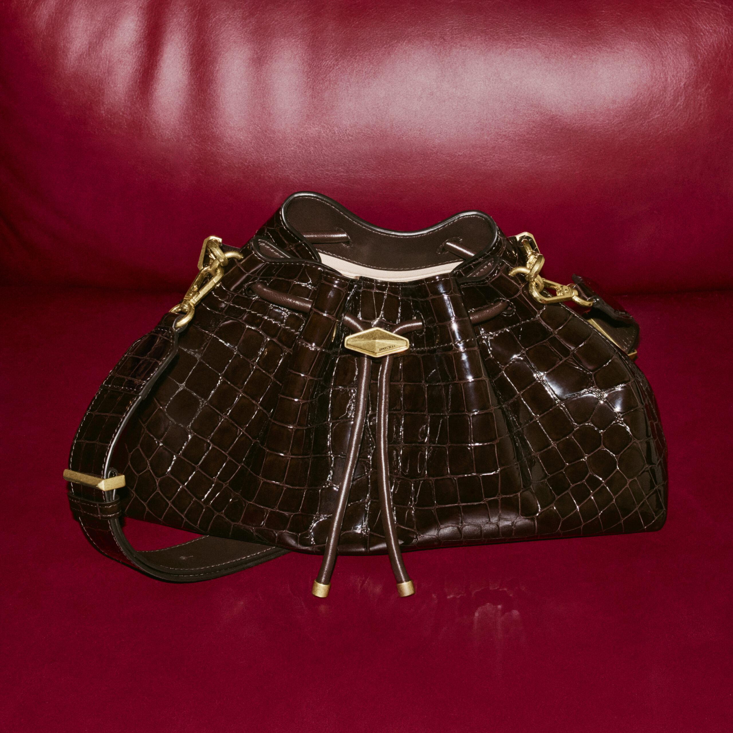 El bolso Cinch Medium es un icono de la casa, definido por una silueta suave y desenfadada, ceñida por un cierre de cordón con diamantes facetados. Este estilo definitivo está confeccionado en una llamativa piel con efecto cocodrilo y se complementa con herrajes en dorado antiguo.