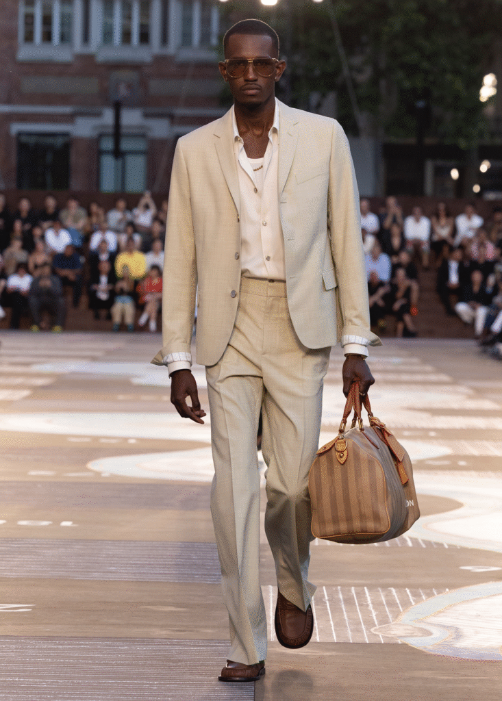 Alumbra la influencia del estilo sartorial indio moderno sobre el guardarropa contemporáneo global, y la refleja en el dandismo que está en el corazón del Studio Homme.Pharrell Williams, a reflexionar sobre la sensibilidad multifacética del vestir sartorial indio actual: telas, cortes, colores y artesanía condicionados por la conexión con la ciudad, la naturaleza y la vitalidad del sol. Louis Vuitton – una Casa de viajes – activa la noción de una comunidad global unida por la apreciación del discernimiento, el savoir-faire y la exploración que están en el corazón de Louis Vuitton.