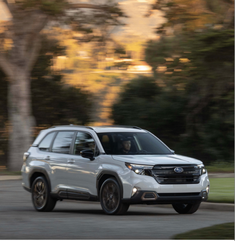 El SUV Subaru Forester 2026 está bien equipado con impresionantes características de serie, incluyendo la tracción total Subaru Symmetrical. Estas características incluyen llantas de aleación de 17 pulgadas con acabado mecanizado, control de crucero adaptativo avanzado con centrado de carril, faros LED con respuesta de dirección, climatizador automático bizona, rieles de techo y gestión del rendimiento del motor SI-DRIVE.